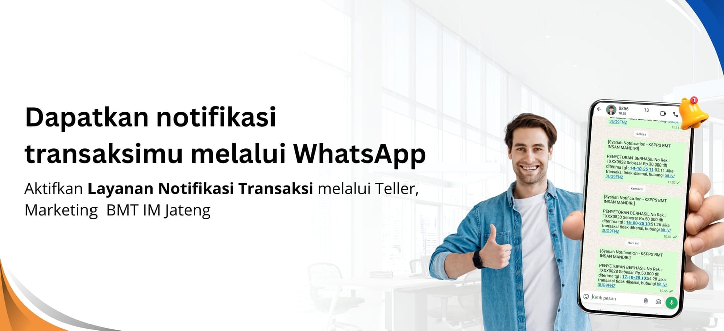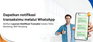 Ya, notifikasi transaksi melalui WhatsApp mencakup seluruh jenis transaksi anggota, seperti penyetoran, penarikan, pembiayaan, maupun transaksi lainnya yang tercatat di sistem BMT.